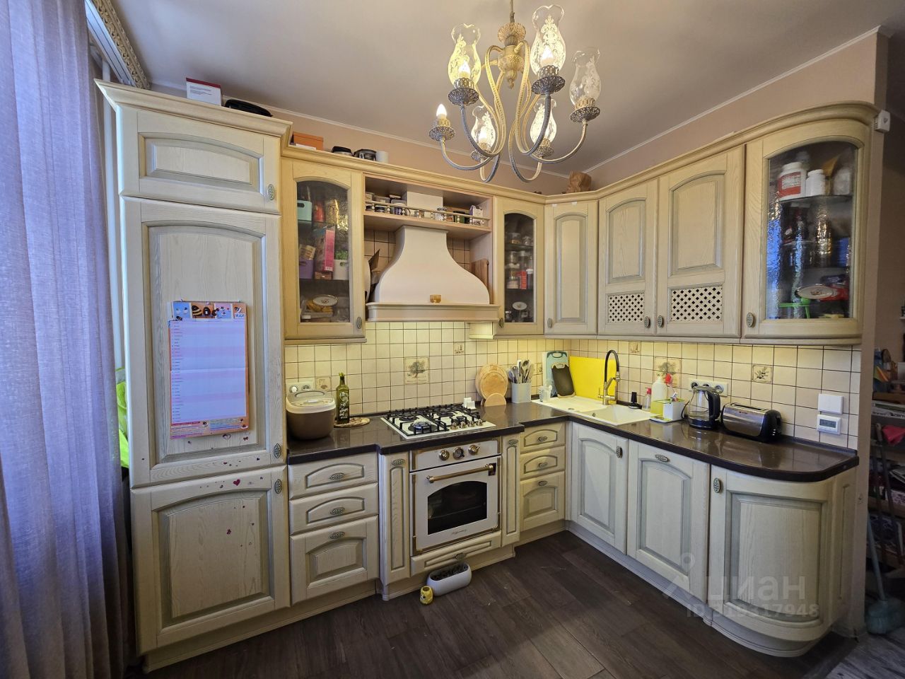Данная квартира продается частично с мебелью и бытовой техникой (кухонный гарнитур со встроенными холодильником, посудомоечной машинкой, варочной панелью и духовым шкафом итальянской марки ''KUPPERSBERG''). В мойку встроен измельчитель отходов.