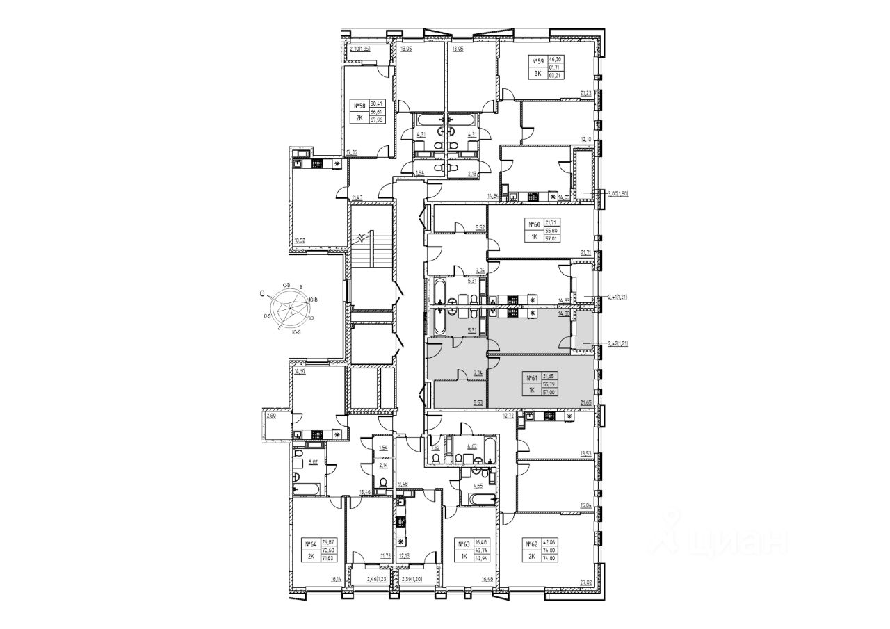 Общая площадь58,21 м2